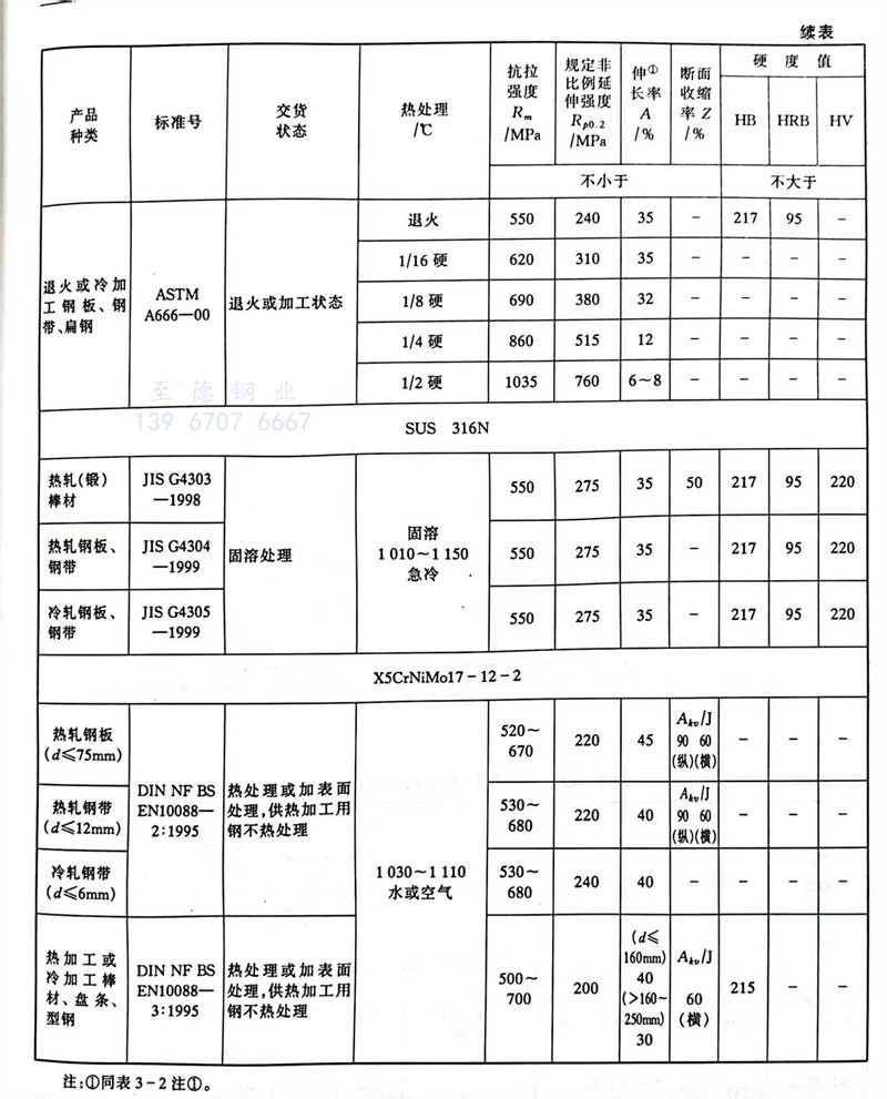 在0Cr17Ni12Mo2鋼中加入0.10%~0.22%的(de)(de)氮煉制(zhi)而成。由于氮在鋼中的(de)(de)固溶強化并穩(wen)定奧氏體(ti)組織的(de)(de)作用,使(shi)其在不降(jiang)低塑(su)性的(de)(de)情(qing)況下,強度得到提高(gao),從而可以減小制(zhi)件(jian)的(de)(de)厚度。