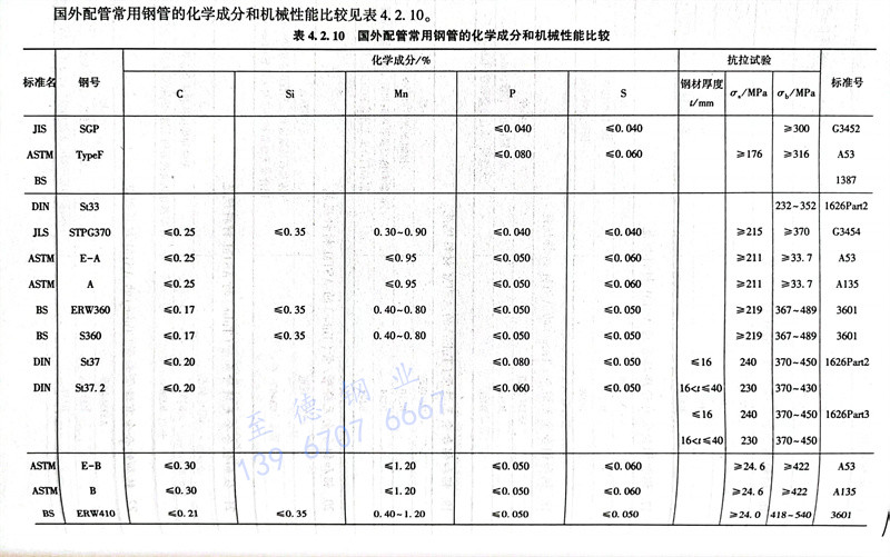 國外配(pei)管常用鋼管的化(hua)學成分和機械性能(neng)比較見表4.2.10。