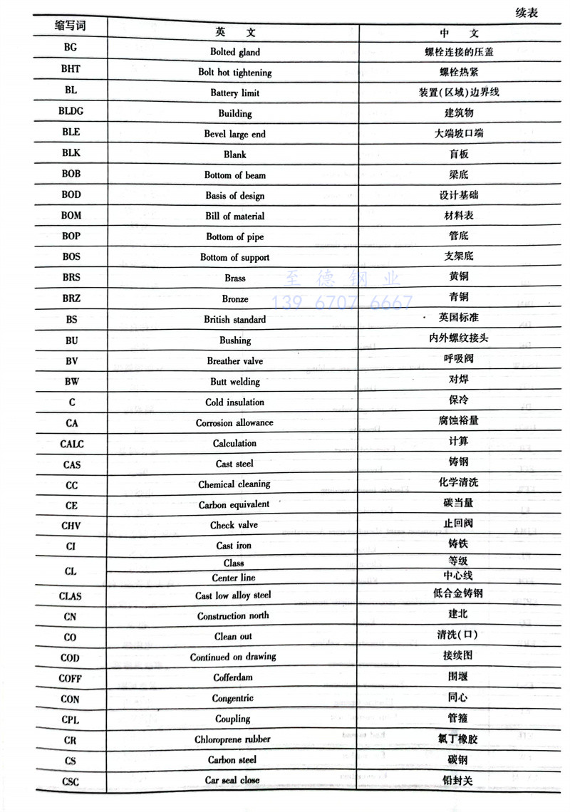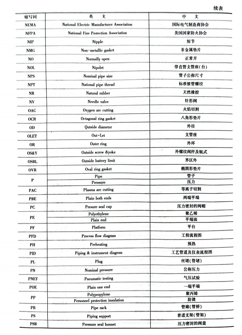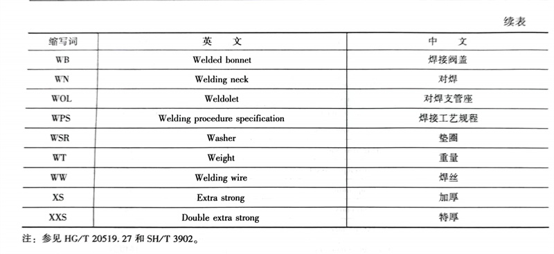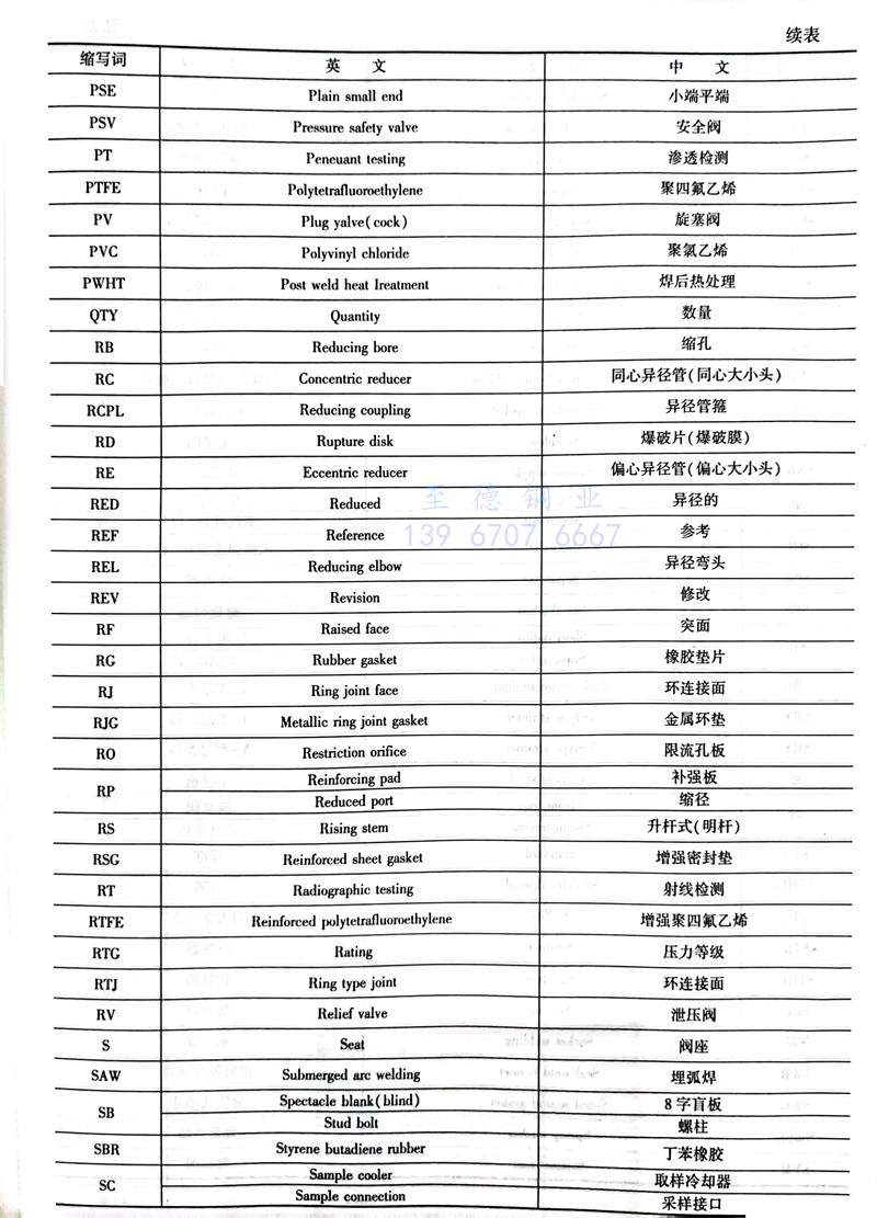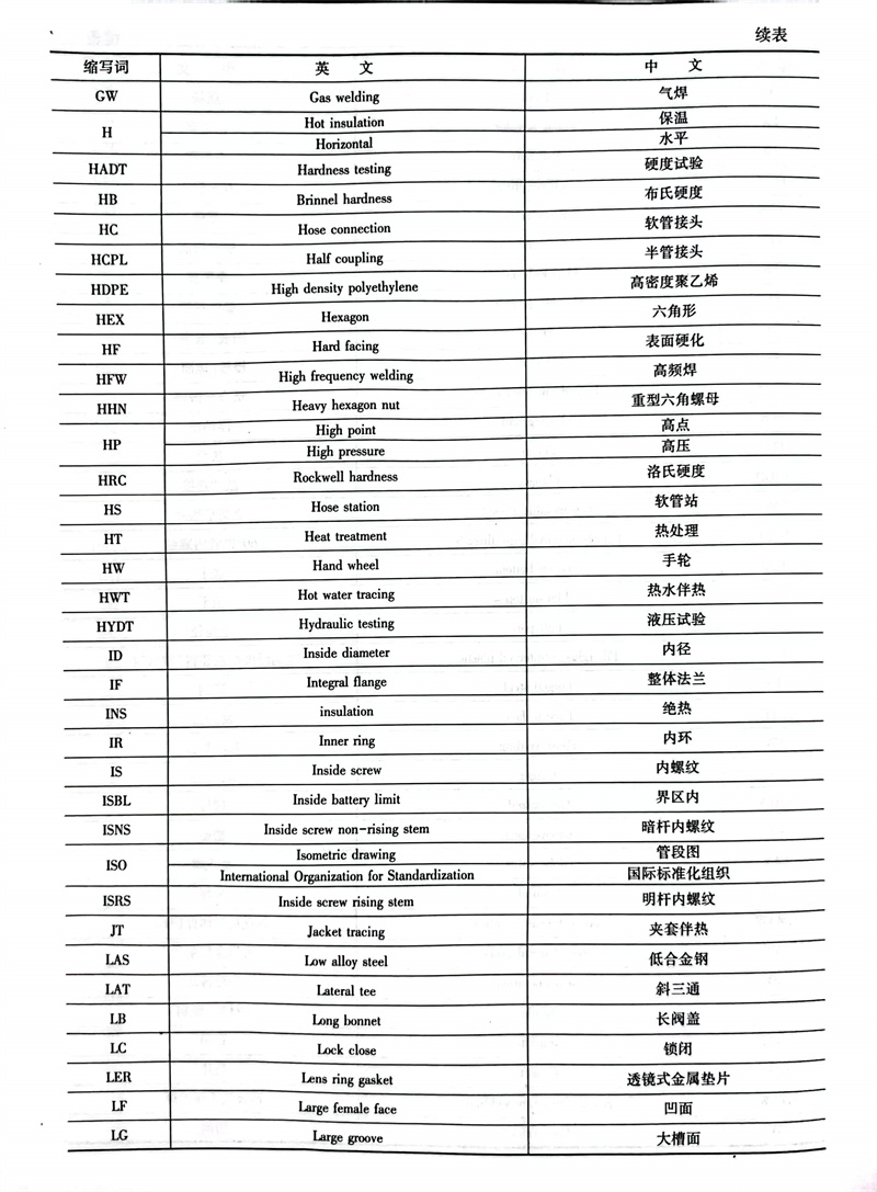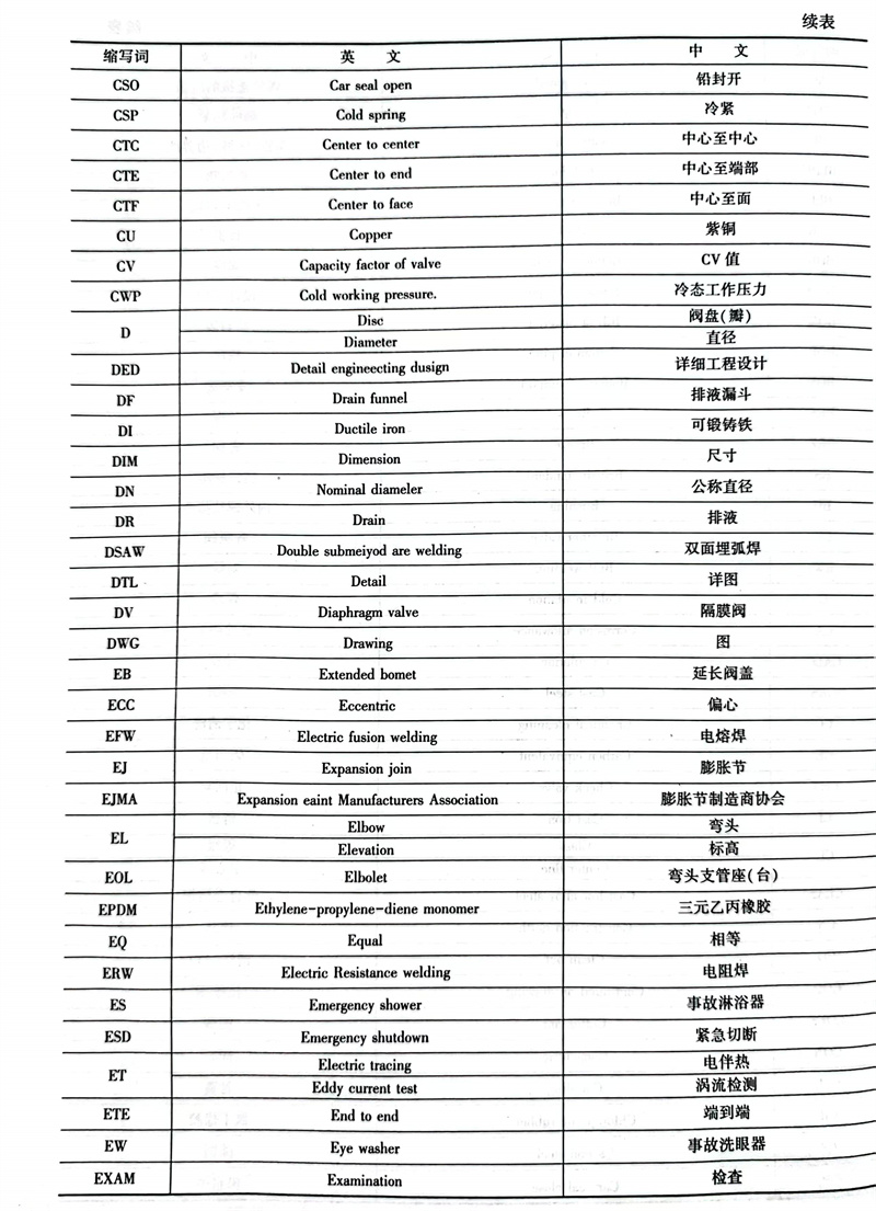 國內外管道器材描述常用縮寫詞(ci)中英文對照(zhao)表