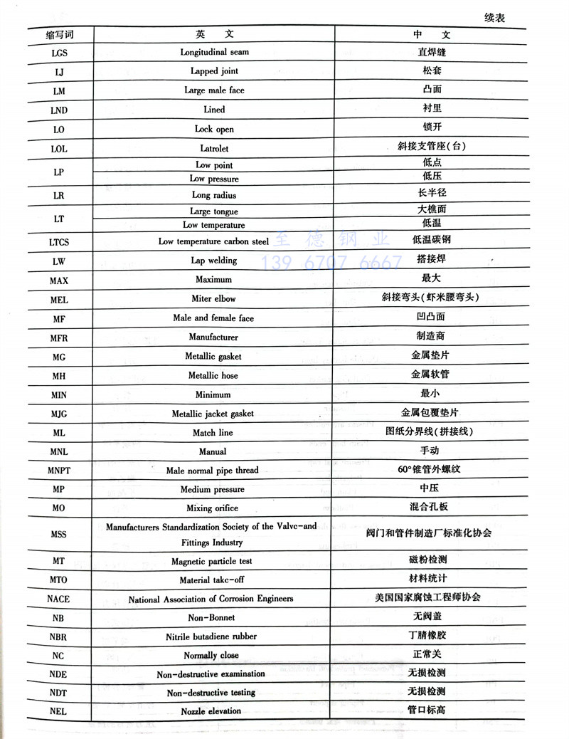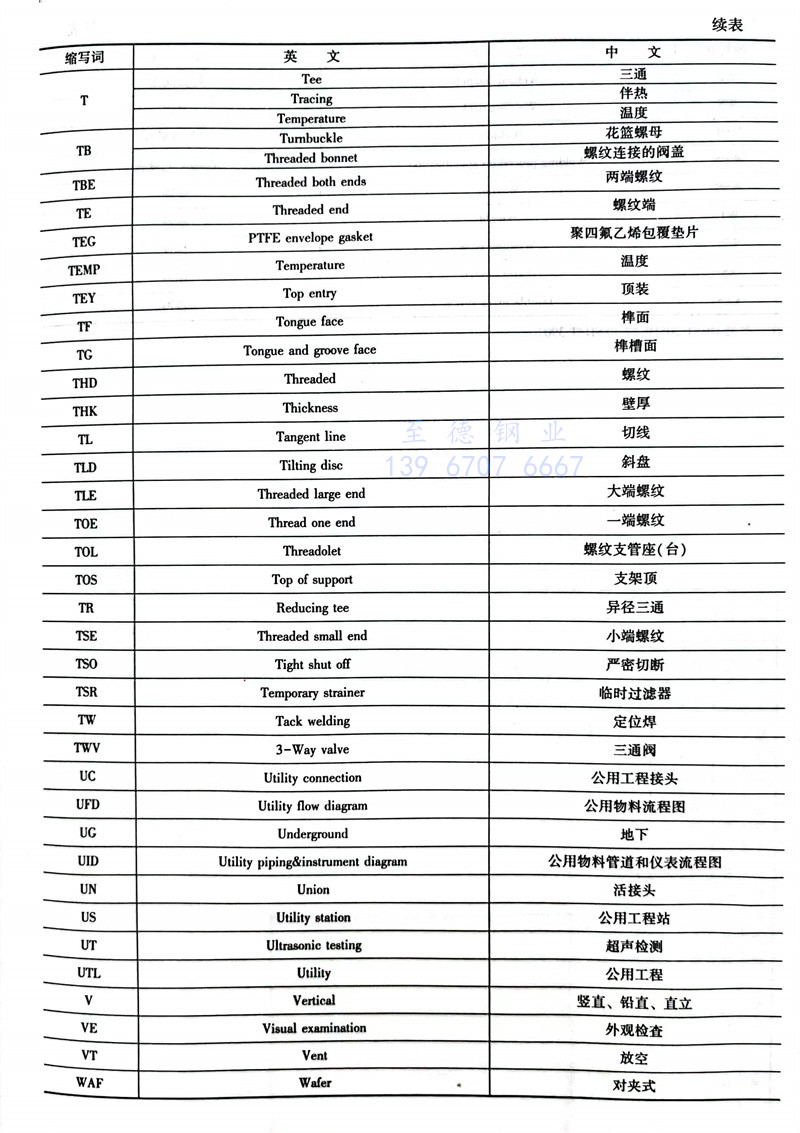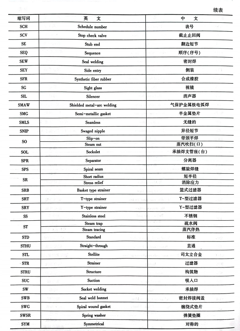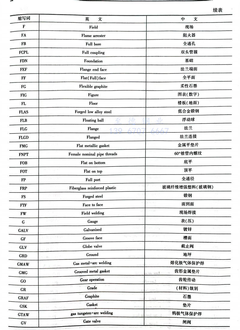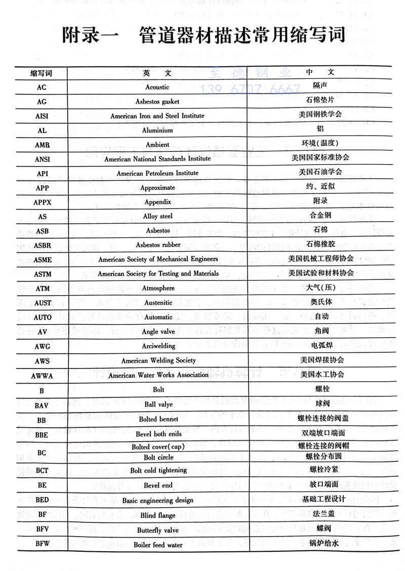 國內外管道器材描述常用縮寫詞(ci)中英文對照(zhao)表