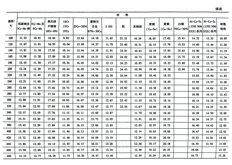 常用金屬(shu)材料線(xian)膨(peng)脹系(xi)數參照表(biao)