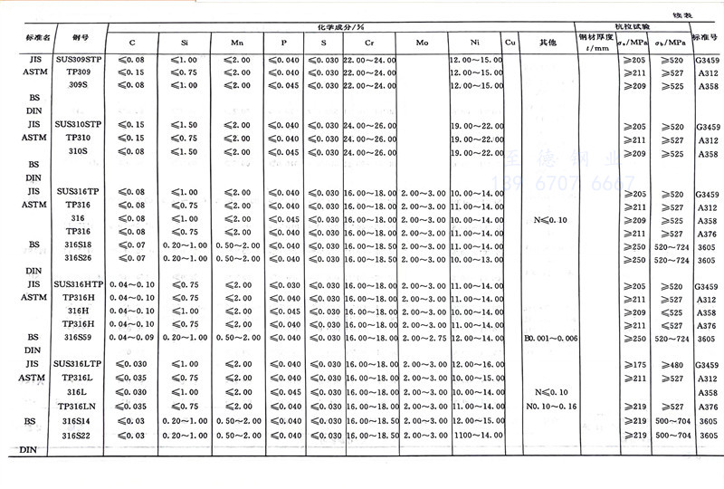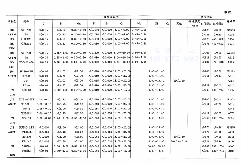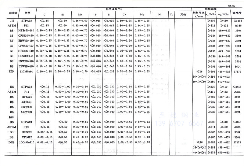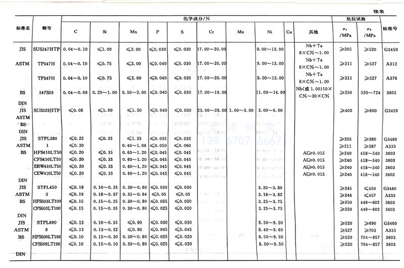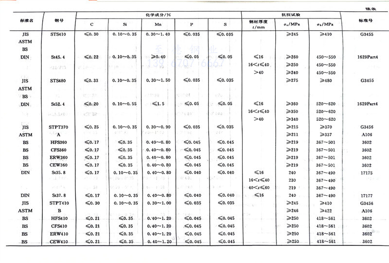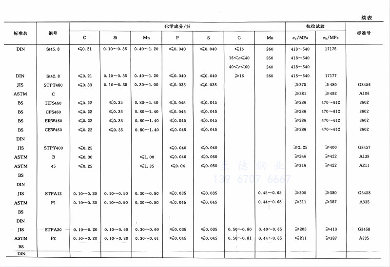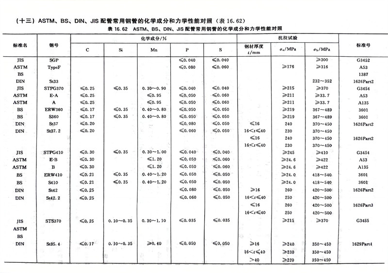 ASTM、BS、DIN、JIS 標準配管常用鋼管的化學成分和力學性能對照表