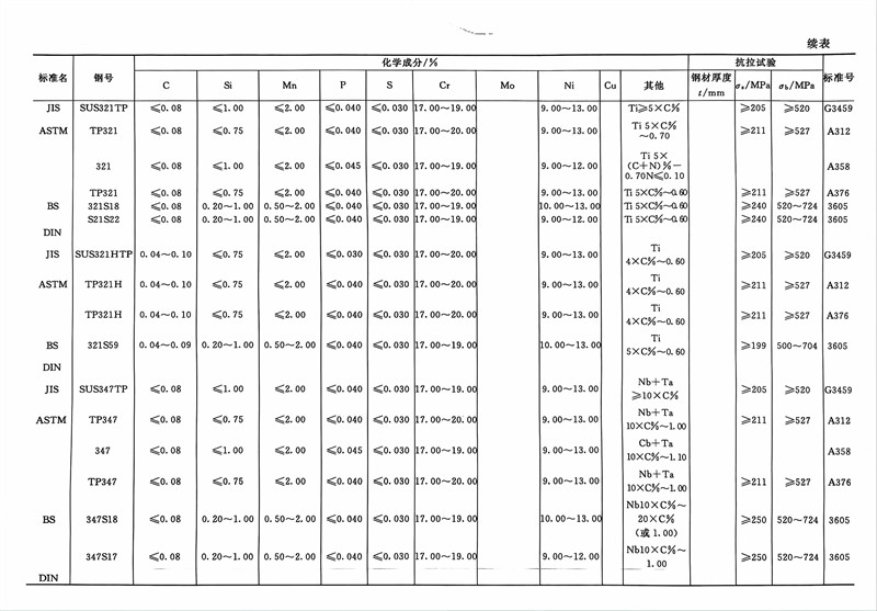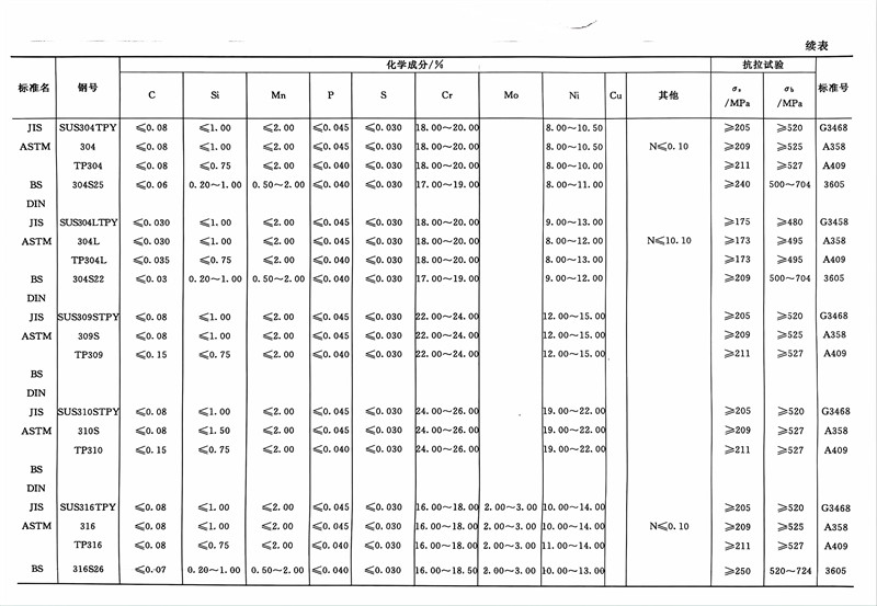 ASTM、BS、DIN、JIS 標準配管(guan)常用鋼管(guan)的化學成分和力學性能對照表