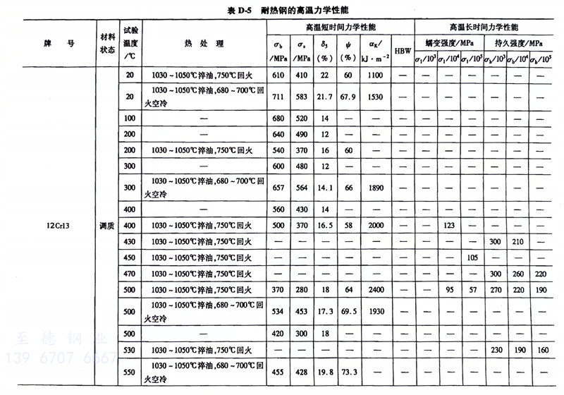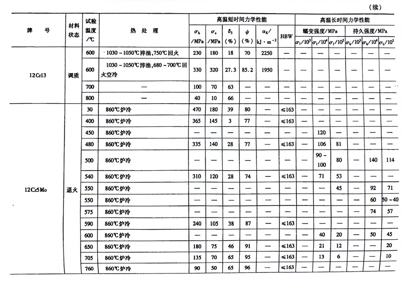 耐熱鋼的高溫力學性能對照(zhao)表
