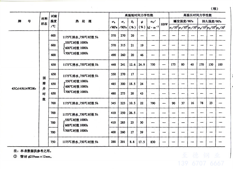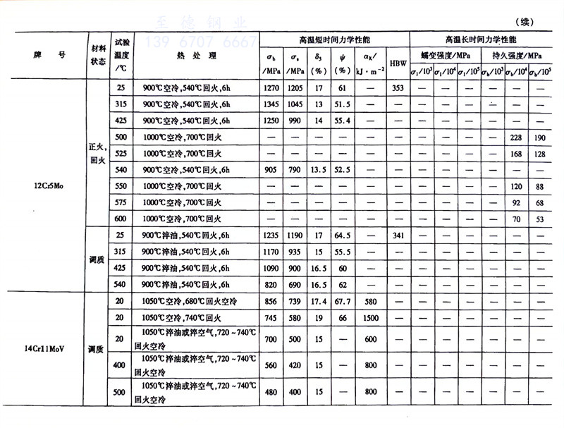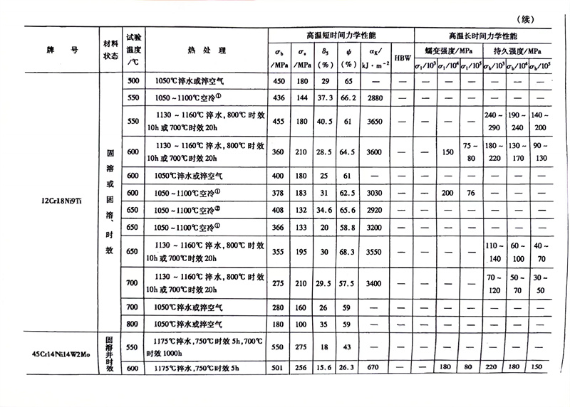 耐熱鋼的高溫力學性能對照表
